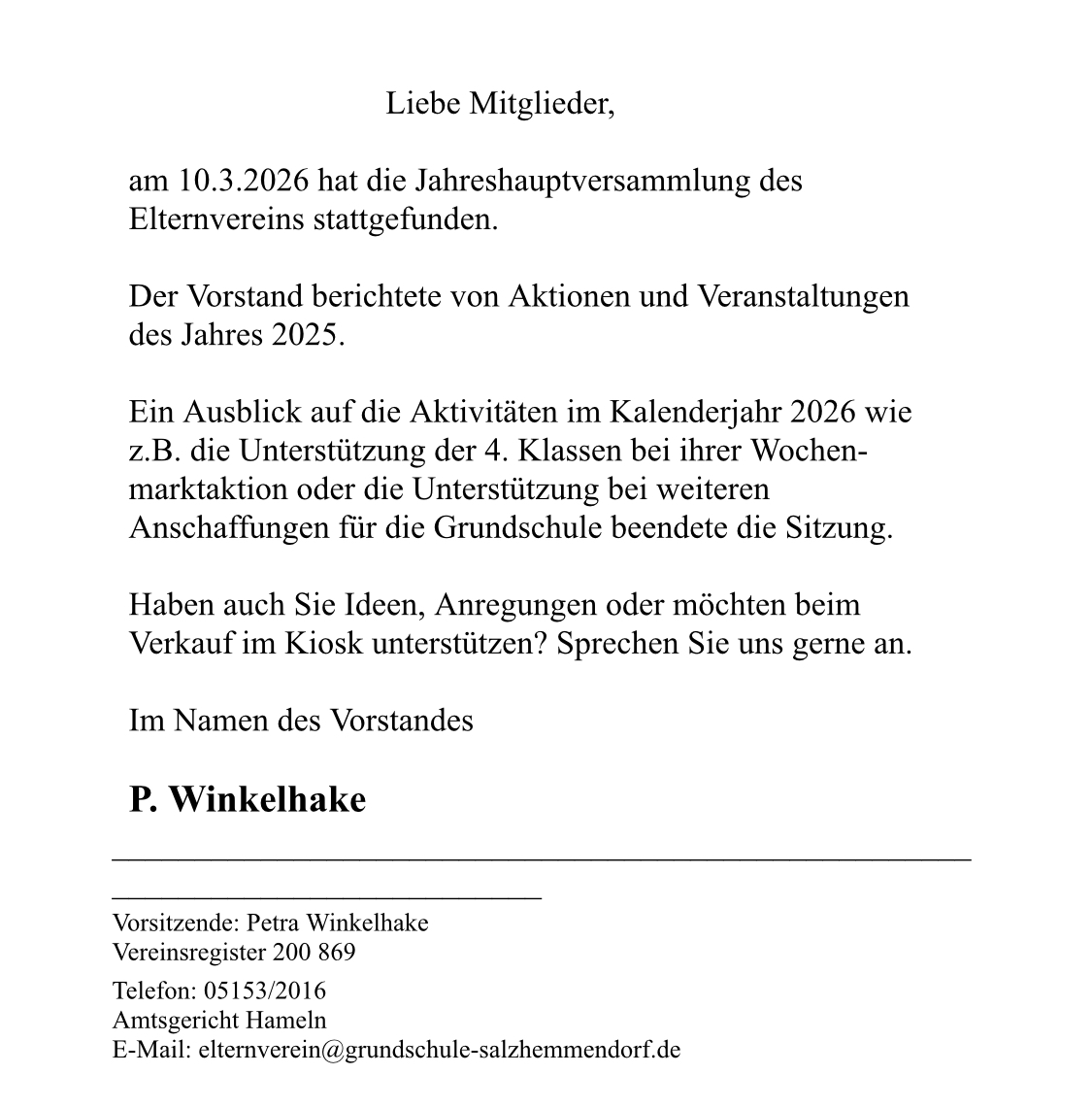 Bericht des Elternvereins